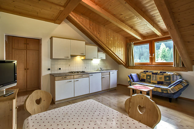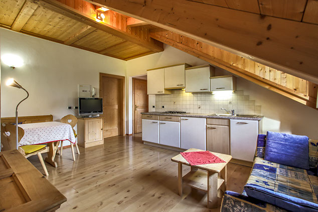 Conferisce un'atmosfera accogliente e di particolare intimità. Mansarda molto confortevole che si adatta a diverse esigenze grazie al soggiorno con pratico divano-letto.