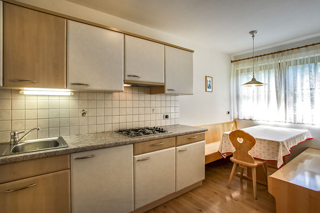 La cucina è molto spaziosa, ben attrezzata e con una splendida vista sul giardino. Le due stanze da letto sono ampie e confortevoli. I mobili in legno massello donano un'atmosfera molto accogliente.